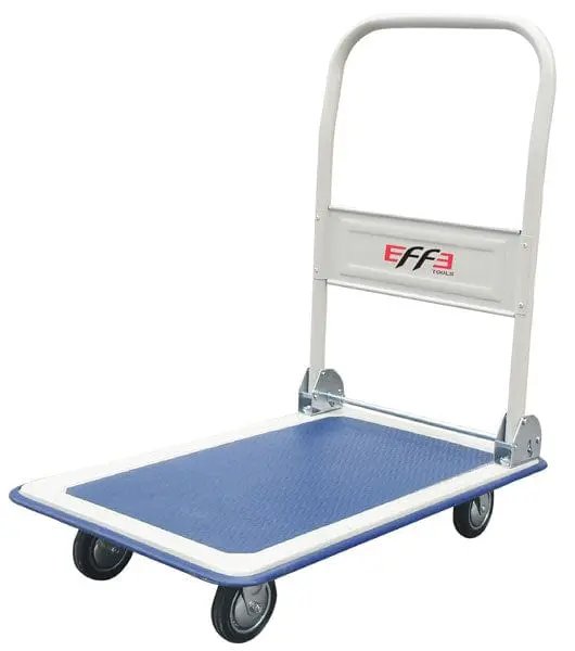 Carrello portatutto in metallo verniciato. Portata 150 kg. Ruote pneumatiche. Tubolare di grande diametro per una maggiore robustezza. Manopole in gomma con paracolpi. Dimensioni: 110x42x42 cm.