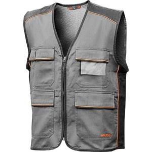 Tessuto 100% cotone 250 g/m2. Dotato di quattro ampie tasche frontali più una tasca porta cellulare. Rete interna per un maggior comfort. Porta badge a scomparsa.