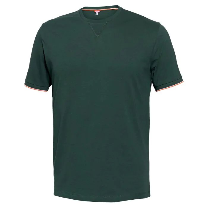 T-shirt in cotone pettinato Jersey con bordini in contrasto su maniche e collo, tergi sudore; giro collo a finita “V”.