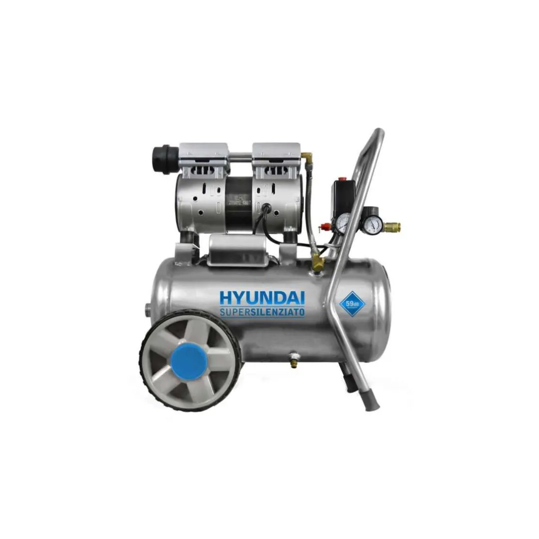 Compressore Hyundai a secco OIL FREE da 24 litri. Dotato di doppio manometro ed attacco rapido, adatto per lavori di meccanica e di manutenzione. Ideale per il gonfiaggio di pneumatici e per la verniciatura. Livello gamma hobbistico perfetto per gli usi p ... (Segue)