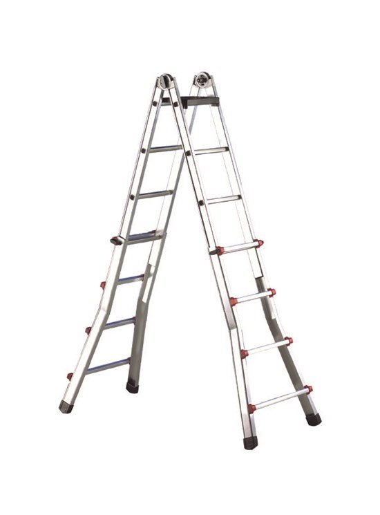 Struttura solida in alluminio. Articolazione in acciaio brevettata, piolo esterno 30x30 mm, fissato con tre punti di saldatura. Sezione montanti 60x22 mm. Portata garantita 150 kg (D.Lgs 81/08). Prodotto Made in Italy.