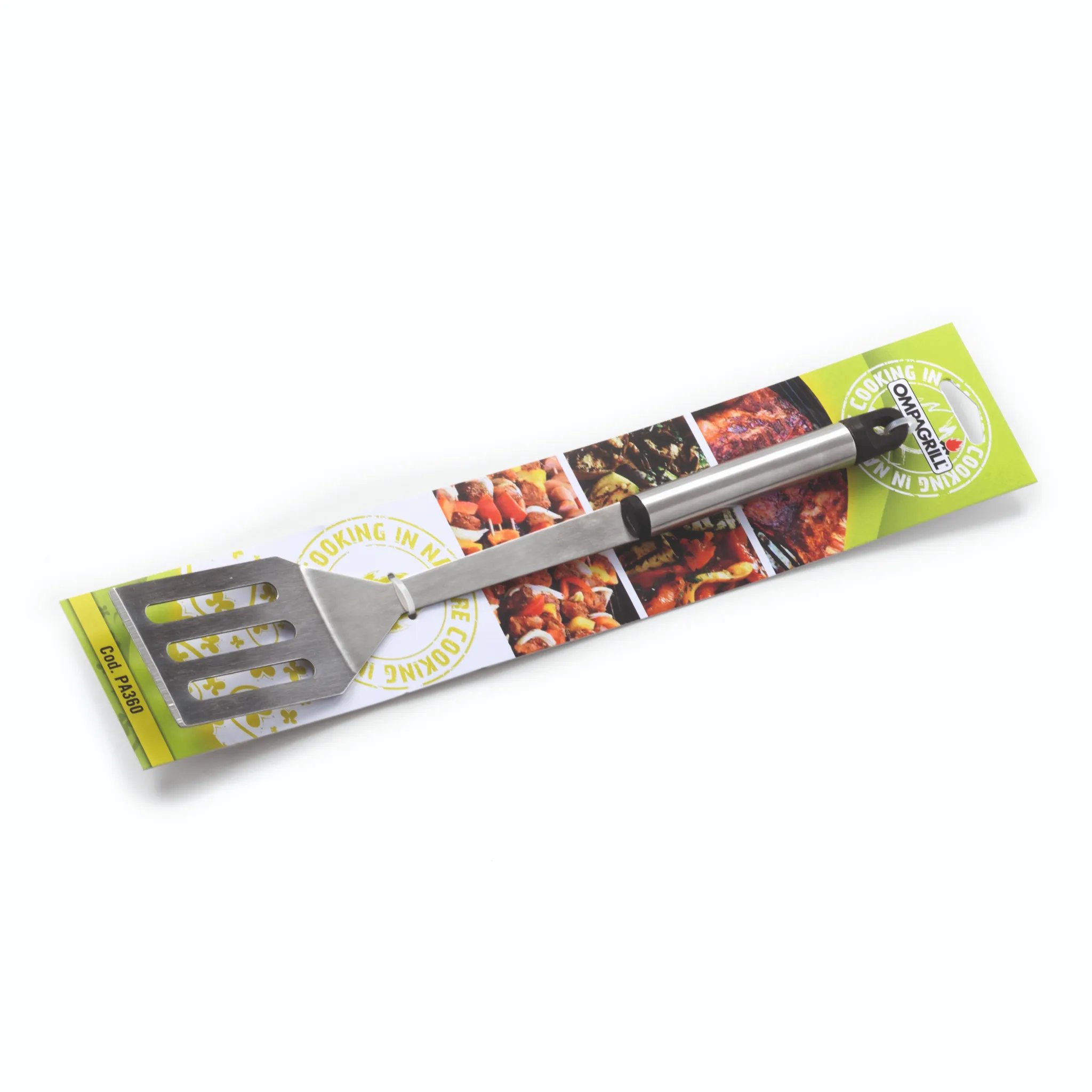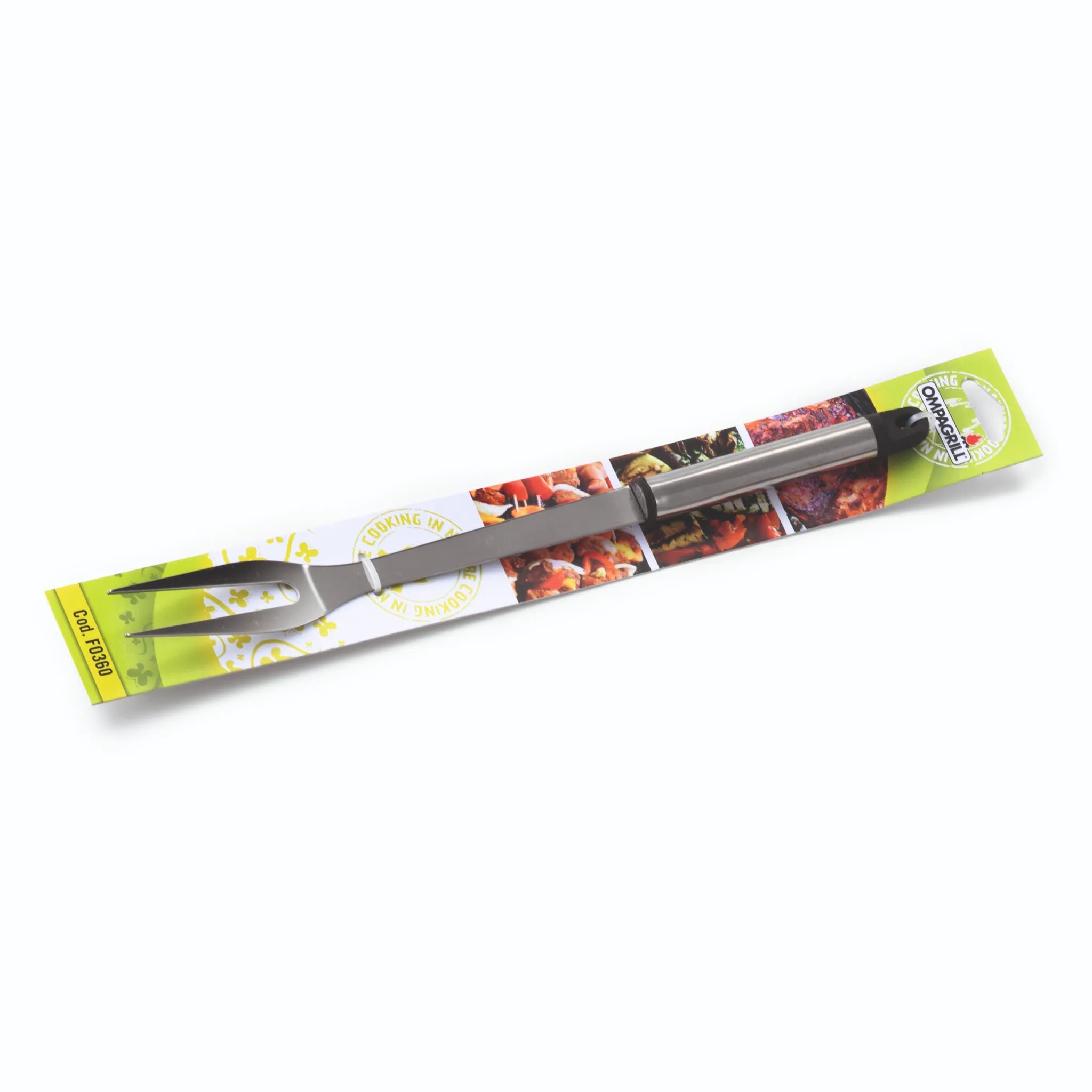 In acciaio inox, manico in legno. Composizione: pinza, paletta, forchettone. In blister.