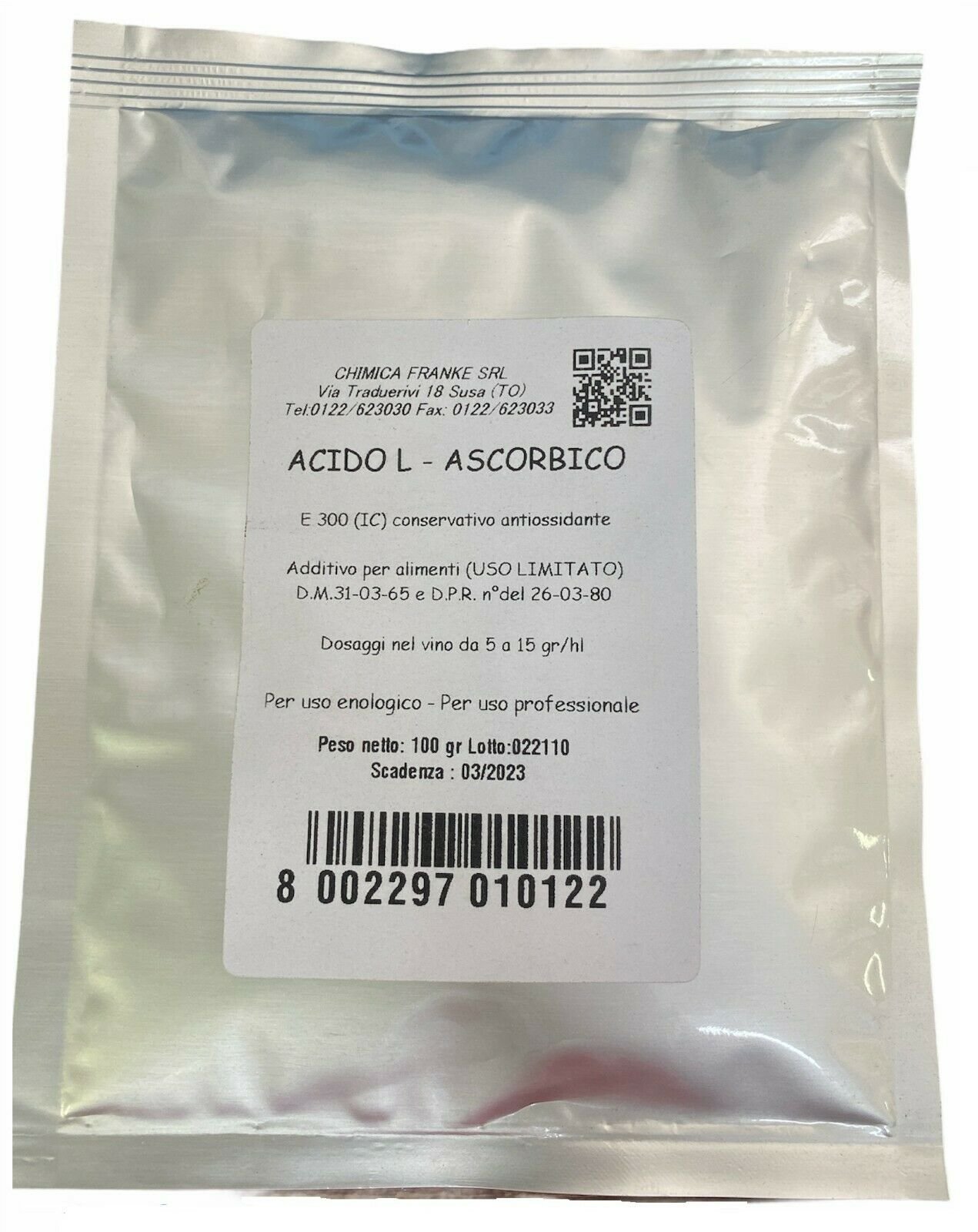 Indicato per la stabilizzazione del vino. Antiossidante, previene le degenerazioni ossidative e stabilizza il colore. Applicazione in numerosi impieghi alimentari: vino, bibite, birra, caramelle, carni fresche, frutta, funghi, insaccati. Dosaggi nel vino: ... (Segue)