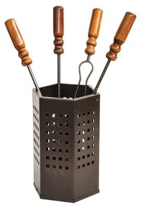 Mod. BOX in acciaio, impugnature in legno. Composto da 4 attrezzi e supporto. Dimensioni cm 18x18x50h