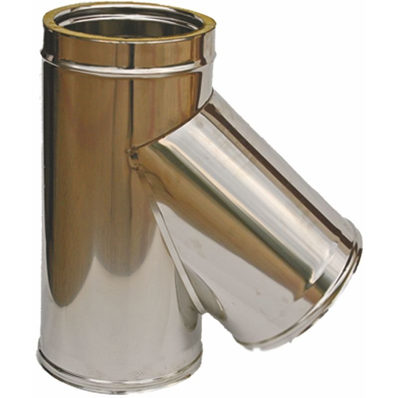 La "T" 135° o Braga a parete doppia, rappresenta il componente fondamentale per raccordare, con angoli a 45° tratti orizzontali, con la verticale di un Sistema Camino