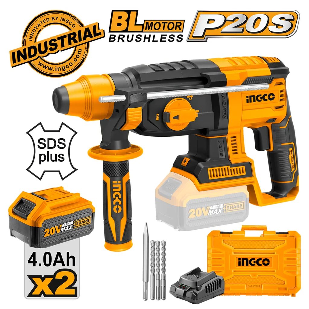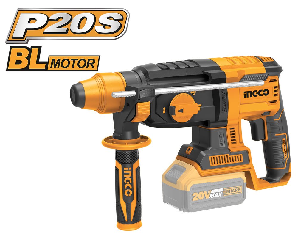 Linea P20S Tensione 20V Velocità a vuoto: 0-930 giri/min Motore Brushless (senza spazzole) Tasso di impatto: 0-4400 bpm Forza di impatto singolo: 4,5 J 3 funzioni Sistema di mandrino SDS Plus Capacità massima di foratura: C ... (Segue)