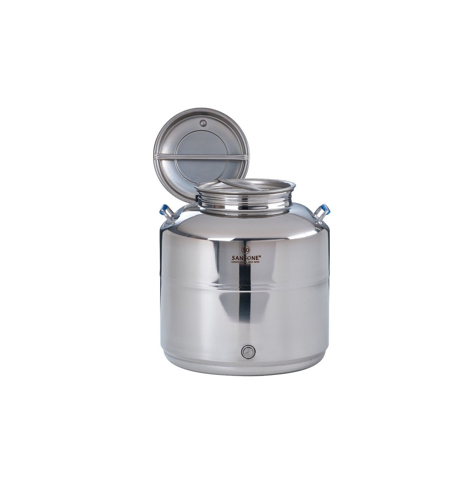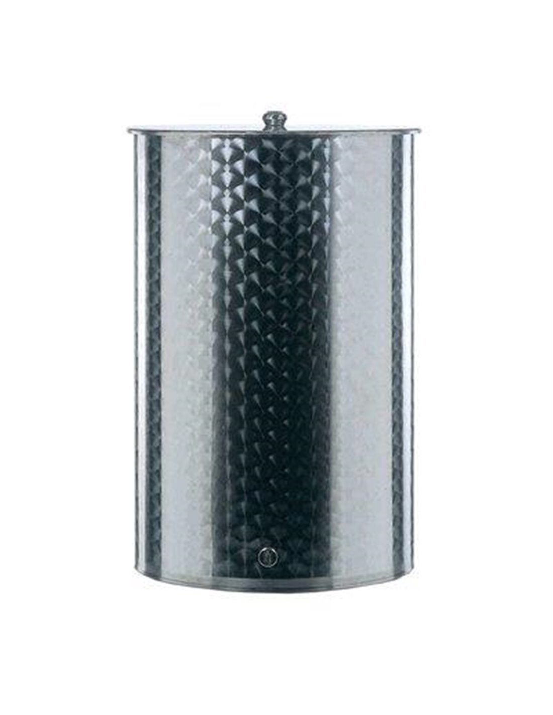 Serbatoio in acciaio inox 18/10 Aisi 304, con rifinitura esterna di tipo fiorettata, ideale per contenere e conservare vino ,olio e liquidi alimentari. Il fondo del serbatoio è piano e saldato al microplasma. È corredato di boccola inox filettata per l’ap ... (Segue)