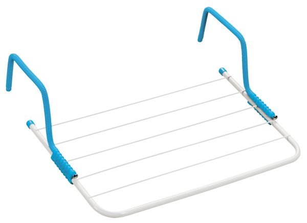 Stendibiancheria da balcone in acciaio e resina, colorato e stabile. Con bracci in resina regolabili e ripiegabili. Spazio di stenditura: 10 mt.