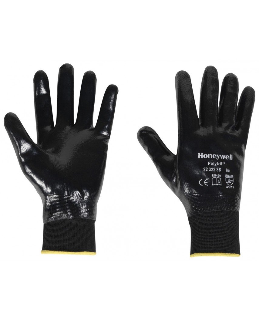 GUANTI NERI IN POLIAMMIDE RIVESTITO IN NITRILE "POLITRYL" TG. 10