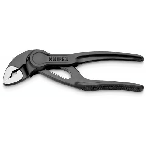 In acciaio cromo vanadio. Manici rivestiti in resina termoplastica, ganasce temprate. Undici possibilità di regolazione mediante pulsante a molla, impiego rapido anche con una sola mano.