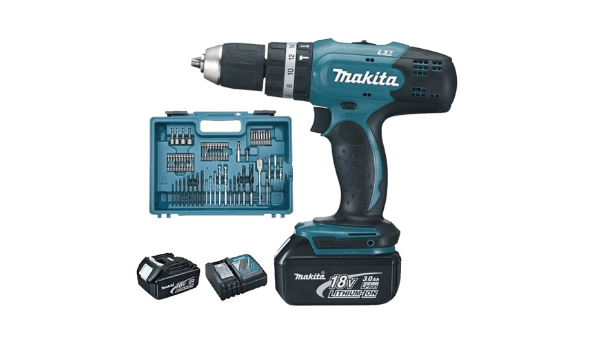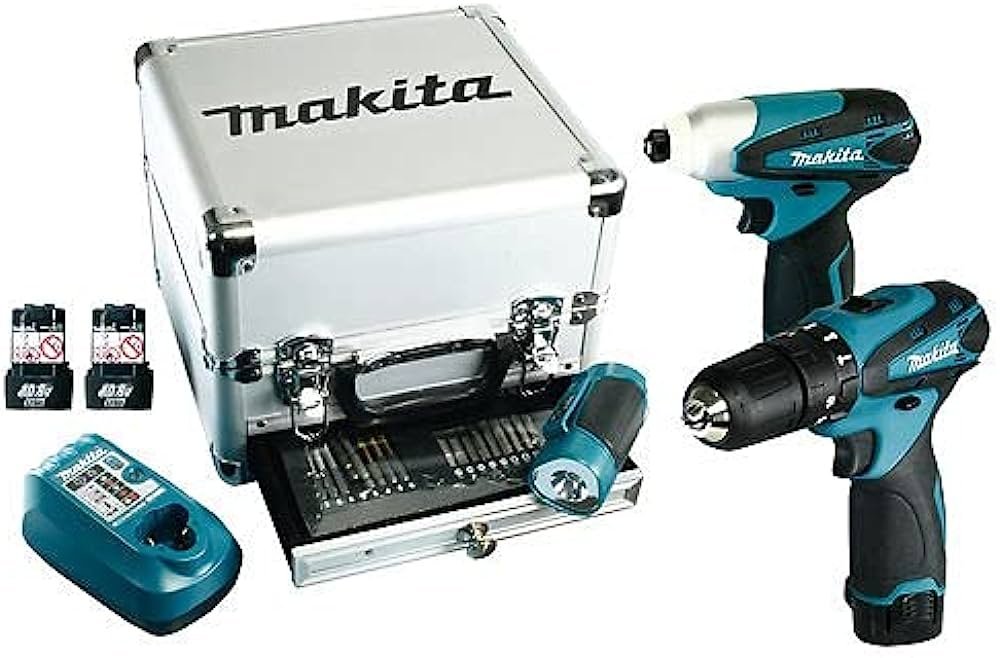 trapano avvitatore con percussione HP330D: 10,8V, tempo ricarica 50 minuti, capacità max foratura legno 21 mm, acciaio 10 mm e mattone 8 mm. Velocità a vuoto 0-350 e 0-1300 giri/min. Peso 1,1 kg. Trapano avvitatore a massa battente TD090D: 10,8V, tempo ri ... (Segue)