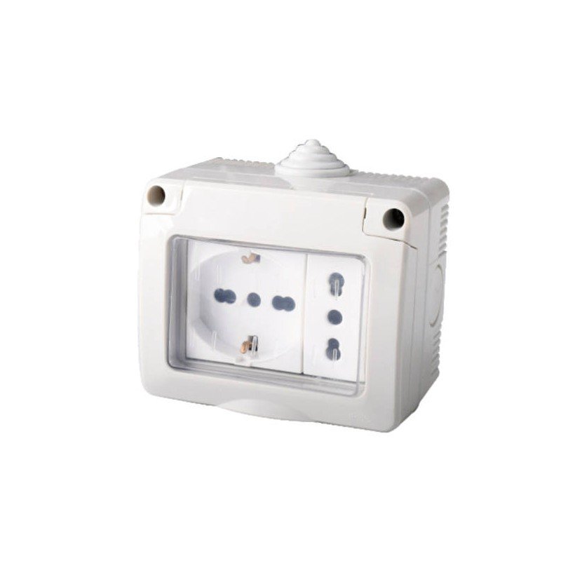 KIT CONTENITORE IP55 PRESA SCHUKO + PRESA SPORTELLO