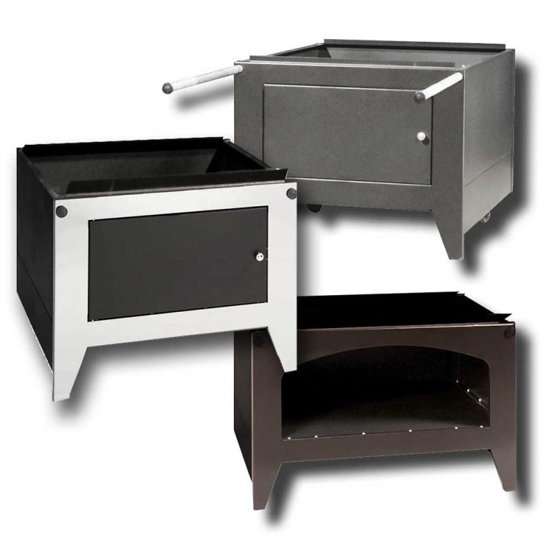 La base d’appoggio più adatta per il forno con il bordo di tenuta che evita fissaggi supplementari. Ha due ruote e due manici estraibili per lo spostamento del forno.