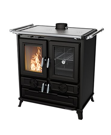 Stufa camino a legna con focolare interamente in ghisa anti-rottura, consente di bruciare ciocchi di legno oltre 50 cm di lunghezza, cassetto cenere estraibile, tecnologia Smoke bypass - Easy cleaning. Vano porta legna estraibile con guide scorrevoli, per ... (Segue)