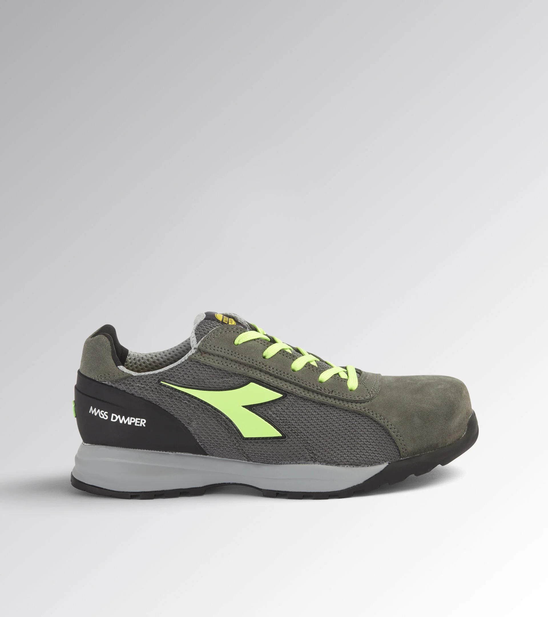 Calzatura di sicurezza bassa S1P vitello scamosciato e mesh. Mass Damper Technology, puntale in alluminio 200J. Calzata 11. Fodera Air Mesh, K SOLE, fi lm in TPU. Plantare anatomico estraibile in PU foam e carboni attivi. Protezione del ta ... (Segue)
