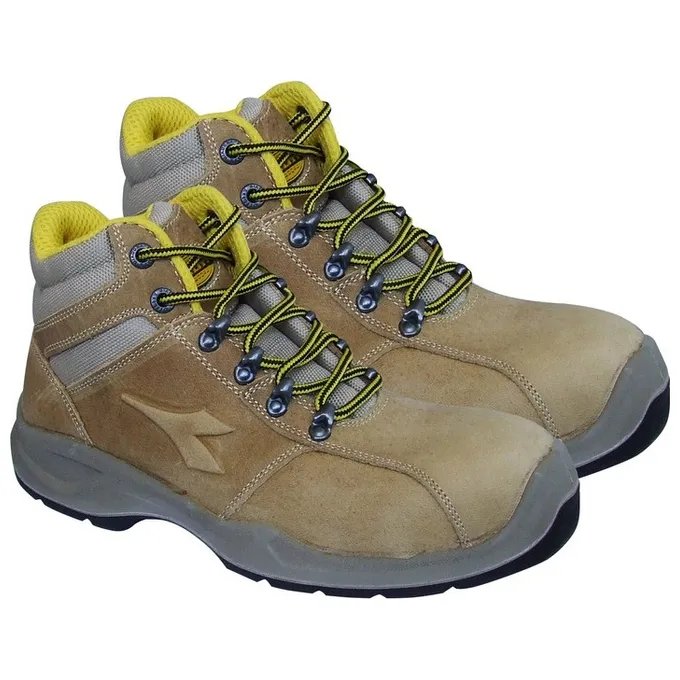 Diadora Calzature da lavoro alte s3 flow II high Marrone Scarpa alta S3 in nabuk pull-up idrorepellente puntale multilayer, fodera air mesh, k-sole passaggio zero, plantare estraibile in eva, colore marrone scuro.