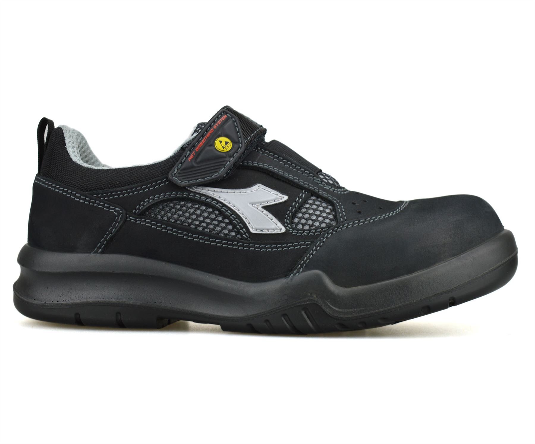 Tecnologia Diadora Free Comfort Low S1 SRC ESD GEOX. Puntale in composito 200J. Tomaia in pelle e mesh con collo e linguetta imbottiti. Chiusura facile da infilare con cinturino a strappo. Fodera in air mesh, sottopiede termoformato ergonomico estraibile ... (Segue)
