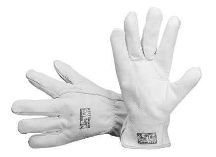 Guanto tutto fiore bovino, polsino bordato, elastico stringipolso, buona resistenza all’abrasione e allo strappo.
