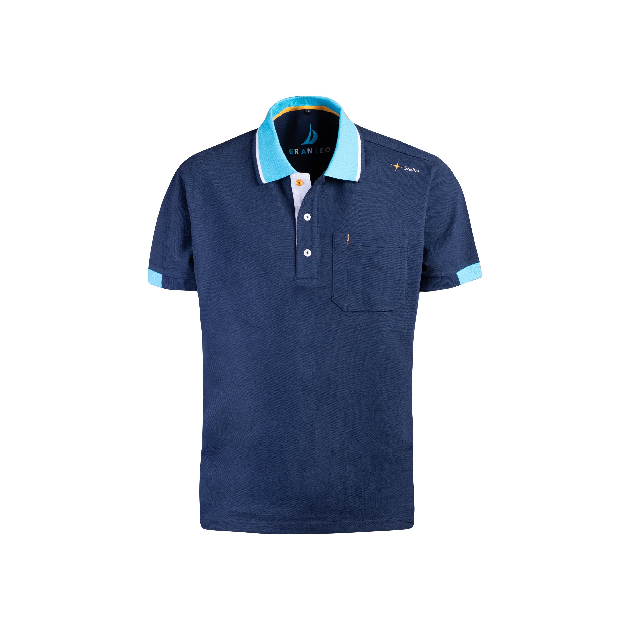 Polo manica corta girocollo con costina elasticizzata e para-sudore a contrasto arancio. Taschino lato cuore con cucitura porta penna e travetta arancio.. Composizione 95% Cotone – 5% Elastan
