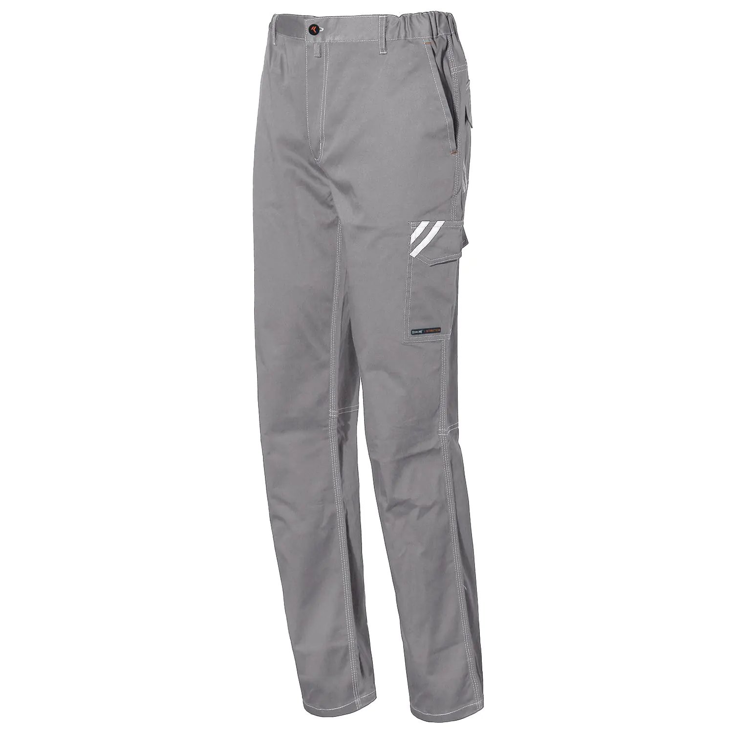 Pantalone stretch con inserti retroriflettenti, dotato di due tasche frontali, due posteriori coperte da pattina, una tascone laterale con soffietti ed una tasca porta metro. L’elastico in vita aumenta il naturale comfort del tessuto elasticizzato. Fornit ... (Segue)
