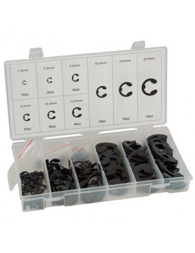 Composizione: 30 pezzi mm 1,6-3, 40 pezzi mm 5, 50 pezzi mm 6-10, 40 pezzi mm 13, 20 pezzi mm 16-19-22. In cassetta plastica.