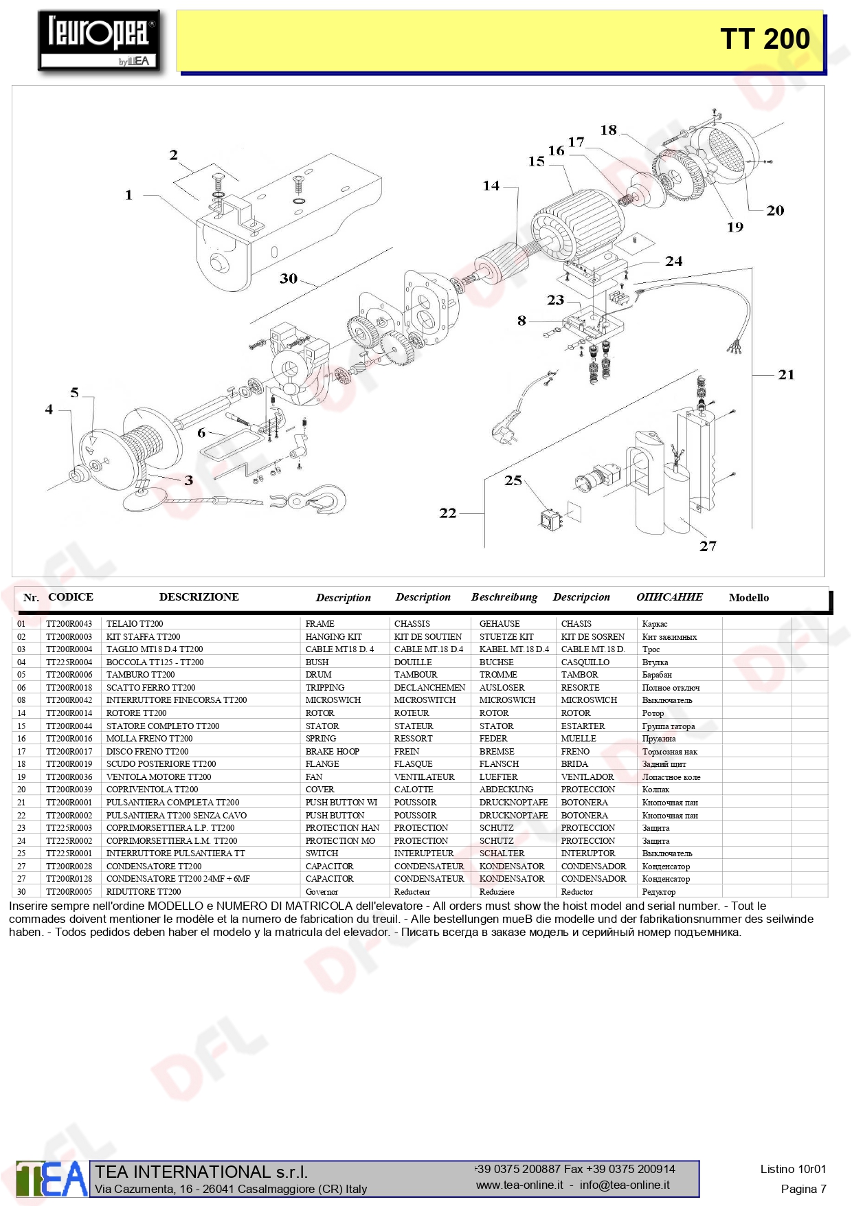 ELETTROCARRUCOLA (TIRATUTTO) 750W 200 KG CAVO 18 MT