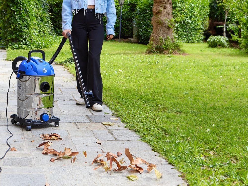 Aspiratore con fusto in acciaio inossidabile, in grado di aspirare perfettamente polvere, sporco solido e liquidi