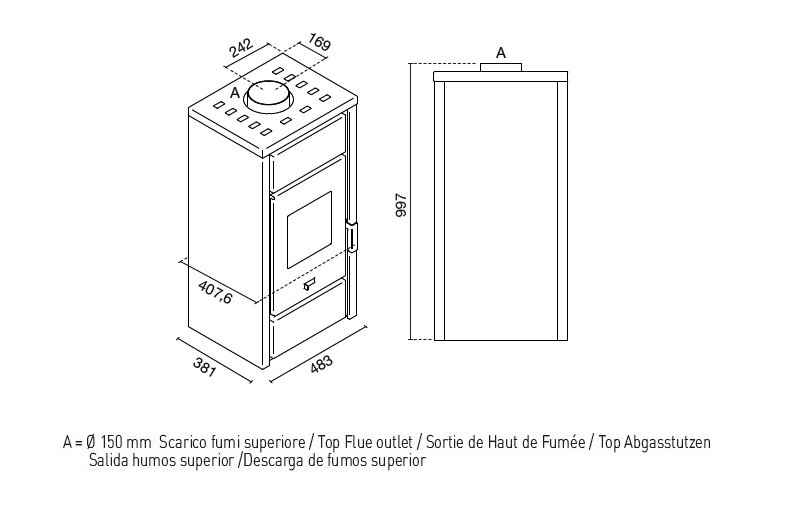 Distanze minime da pareti infiammabili: lato: 40 cm - retro: 40 cm - fronte: 150 cm