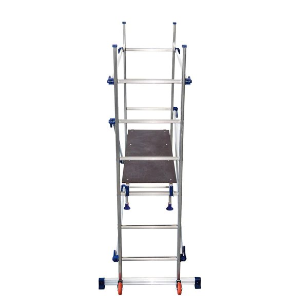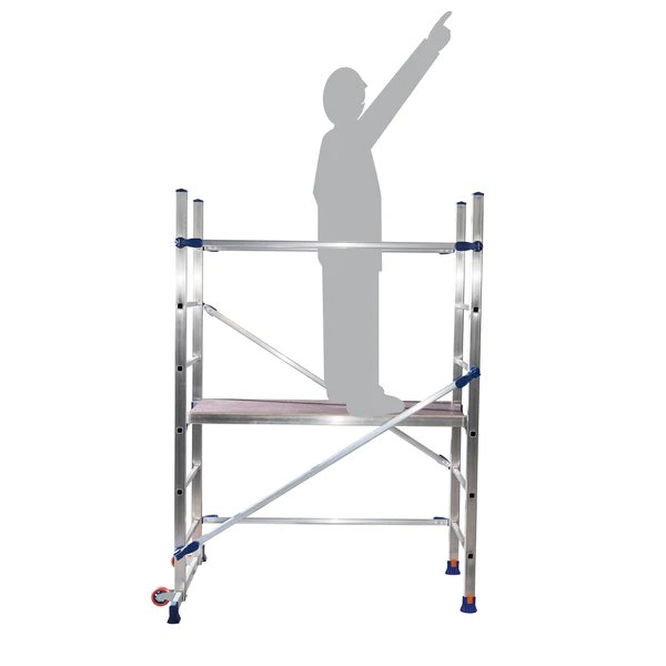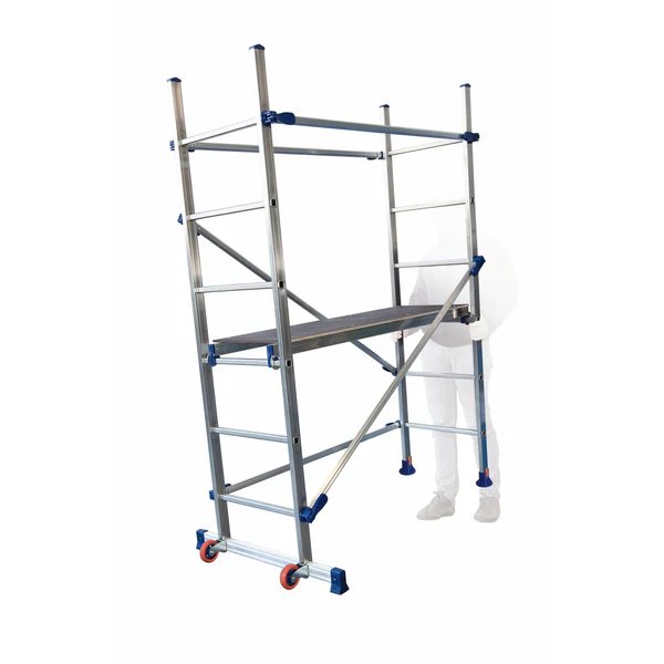 - Trabattello Piccola impalcatura facciale P6 Facal - Mobile in alluminio per tutti i lavori su e in casa con un'altezza massima di lavoro di 2,90 m. - Facal P6 è un piccolo ponteggio mobile che è molto flessibile ed estremamente stabile in uso. - La capacità di carico massima è di 150 kg, l'altezza di lavoro massima di questa impalcatura è di 2,90 m. - Le impalcature possono essere installate rapidamente e facilmente da 1 persona in pochi minuti. Grazie alle due ruote e al peso ridotto di poco meno di 15 kg, i ponteggi possono essere sollevati e regolati facilmente e rapidamente. - La ringhiera di sicurezza su 4 lati e i grandi piedi antiscivolo offrono all'utente la massima sicurezza. L'impalcatura può essere utilizzata anche su scale e tacchi. - Impalcatura mobile super flessibile e leggera per un utilizzo sicuro dentro e fuori casa con due ruote. Piccolo ponteggio in alluminio per uso domestico. Stabile e compatto grazie a un sistema di fissaggio espandibile con leve nella cavità del gradino - Gancio di sicurezza sul palco - Facile e flessibile da regolare: grazie alle due ruote di alta qualità e al peso ridotto, l'impalcatura può essere regolata facilmente ed ergonomicamente da 1 persona - Stabile: i tre montanti orizzontali e i due montanti diagonali sono facili da inserire e stringere con una mano grazie al sistema di impugnatura morbida - Sicurezza: i due piedini dell'impalcatura di grandi dimensioni e antiscivolo, i 4 ganci di sicurezza sulla piattaforma di lavoro, l'ampia base con la traversa e la nota e alta qualità del prodotto del viso conferiscono al ponteggio la massima stabilità - Ideale per lavori di assemblaggio e verniciatura - Regolazione della scala: l'impalcatura può essere utilizzata anche su scale e tacchi - Altezza totale: 189 cm - Larghezza totale: 89 cm - Larghezza telaio: 58 cm - Dimensioni del palcoscenico: 125 x 41 cm - Area: 0,16 m³ - Peso: 14,6 kg - Capacità di carico: 150 kg - Lunghezza: 146 cm - Altezza stand: max. 90 cm - Altezza di lavoro: 290 cm