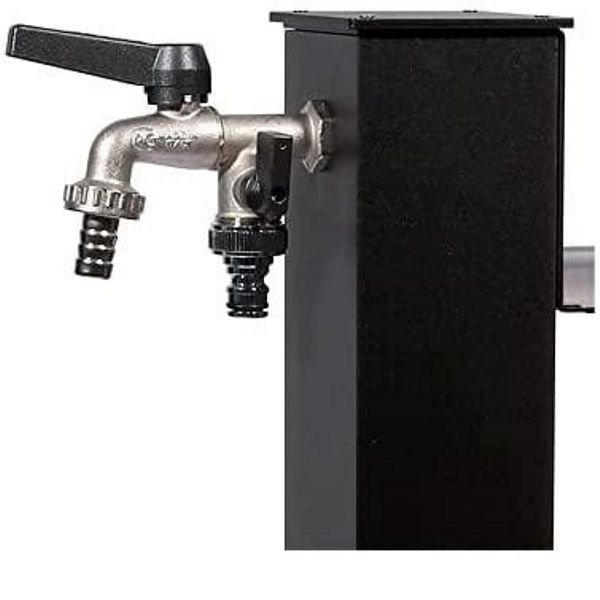 Fontana quadrata in alluminio completa di impianto, doppio rubinetto e portagomma già incluso. Trattamento antiruggine.