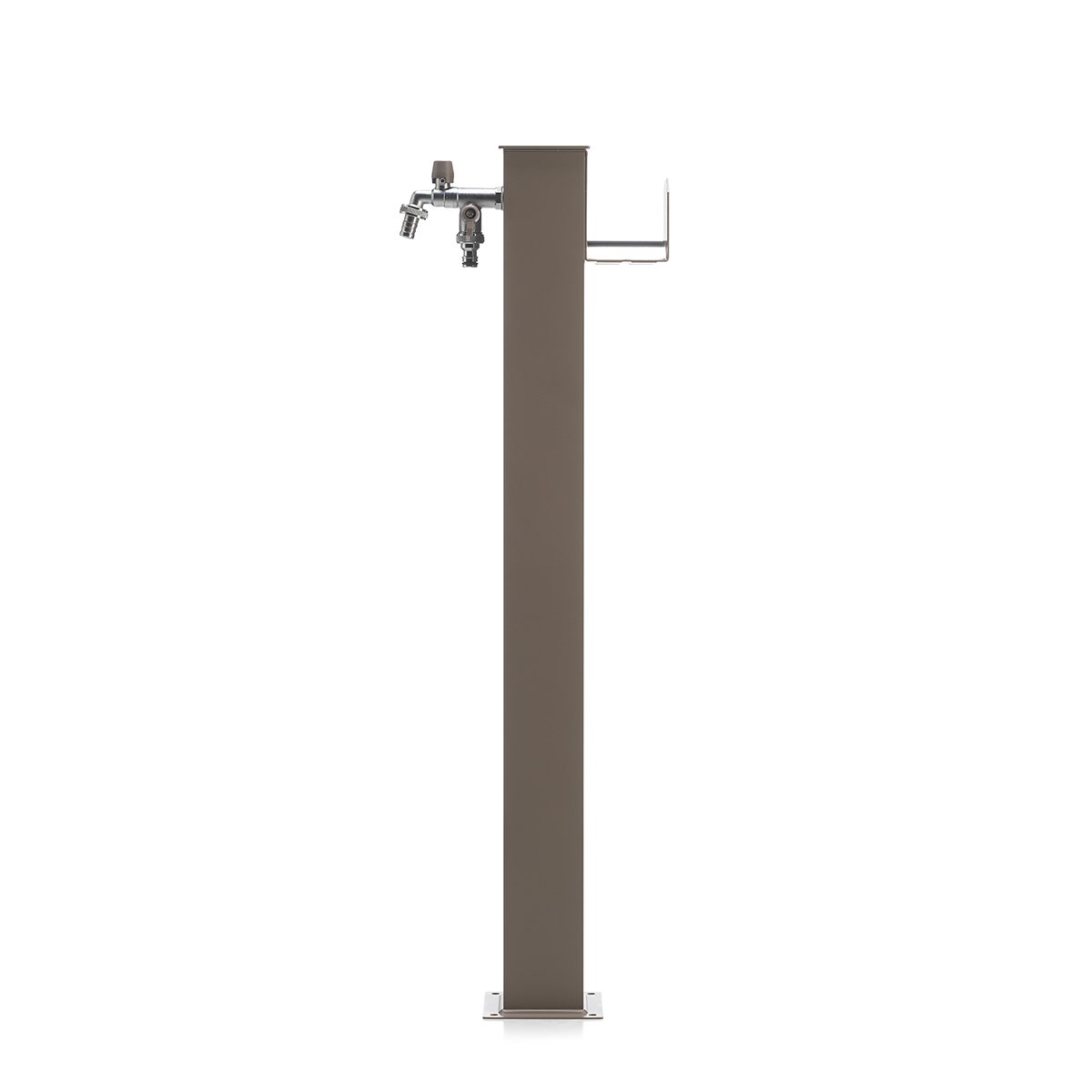 FONTANA A COLONNA QUADRATA IN ALLUMINIO CON PORTAGOMMA E DOPPIO RUBINETTO COLOR TORTORA