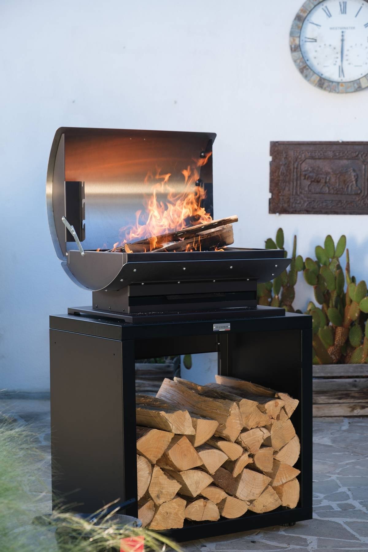Telaio in doppio materiale: acciaio inox/acciaio, vernice epossidica di colore nero Da poggiare su un mobile cucina, mobile di servizio con rotelle o superficie in materiale refrattario
