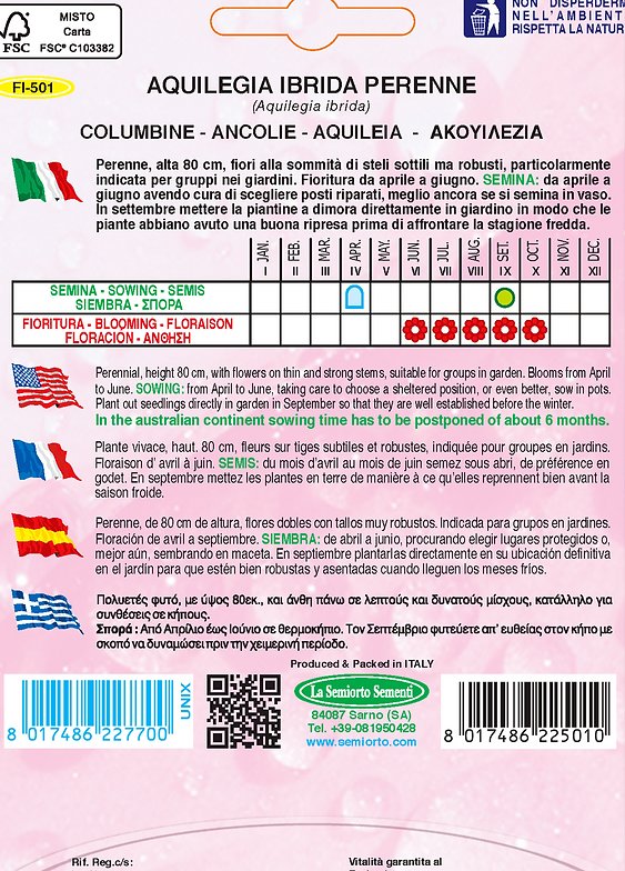 SEMENTI AQUILEGIA IBRIDA MISCUGLIO