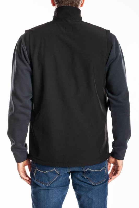 Gilet softshell basico, collo in piedi, apertura zip rovescia, vestibilita' regolare. 2 tasche con zip rovesce al fianco e tasca telefono a filetto al petto. dettaglio stampa reflex a motivo su taglio petto. tessuto a 3 strati, 300 gr, impermeabile 5000/mm, traspirante 500mvp
