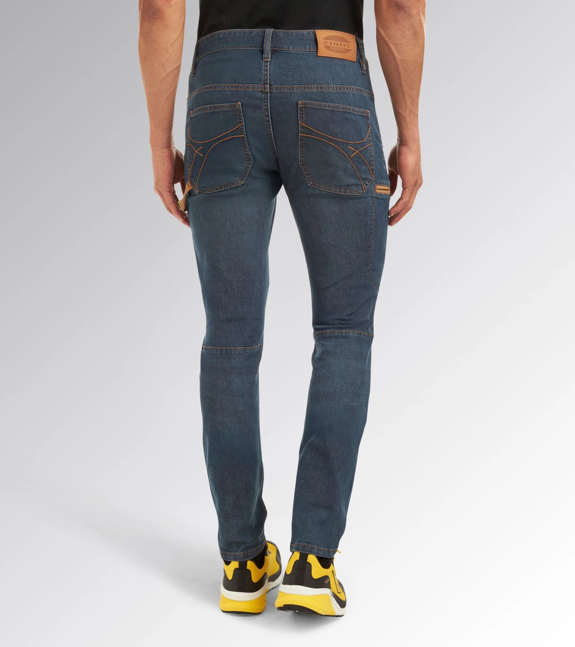 Denim workwear leggero stone washed, elasticizzato. Trattamenti e cura dei dettagli tipici della tradizione della jeanseria italiana. Ginocchiere e tagli ergonomici, portametro e portamartello, dettagli a contrasto in canvas.